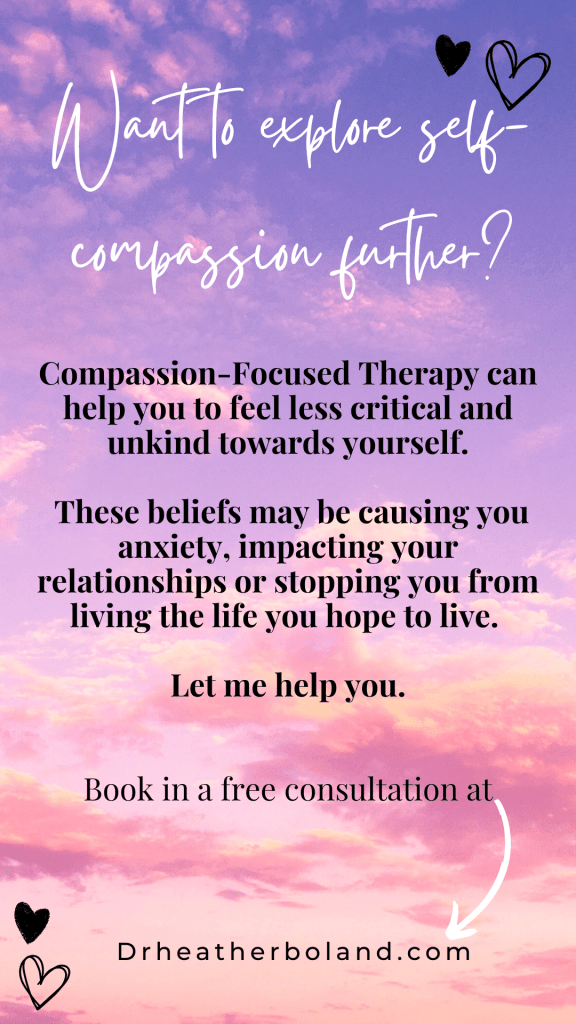 I offer Compassion-Focused Therapy to help you understand why feeling compassionate towards yourself may feel unpleasant (or even ‘yucky’) and I can help you feel able to be kinder towards yourself and be more confident 💜
